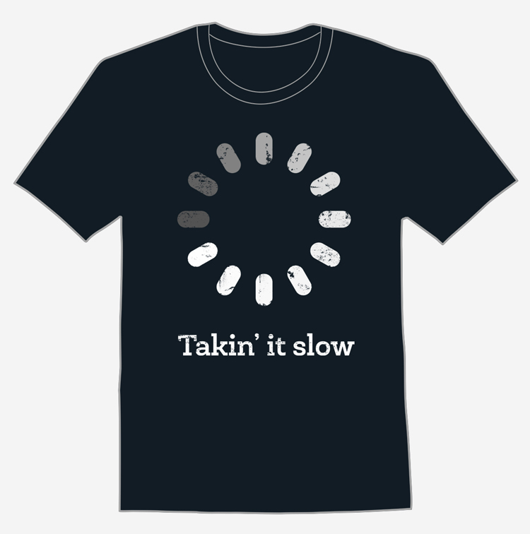 Featuring a dark to light gradient “loading” icon typically used to denote a slow loading app, webpage or bad internet access, the wearer of this shirt bucks the trend and says “screw the race!”